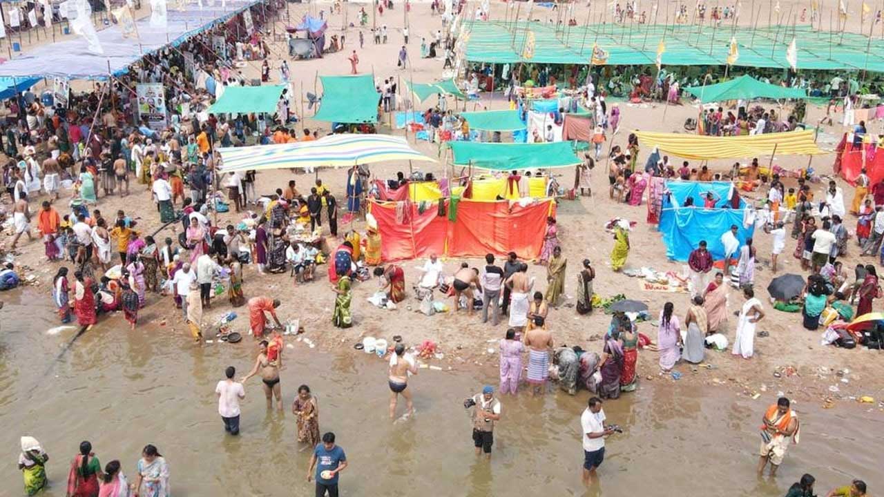 అక్షరటుడే, వెబ్డెస్క్:Saraswati Pushkaralu | కాళేశ్వరంలోని త్రివేణి సంగమం ద్ద సరస్వతి పష్కరాలు నేటితో ముగియనున్నాయి. ఈ నెల 15న ప్రారంభమైన పుష్కరాలకు లక్షలాది మంది భక్తులు తరలివచ్చారు. త్రివేణిం సంగమం వద్ద పుణ్యస్నానాలు ఆచరించి కాళేశ్వరంలోని ముక్తేశ్వర స్వామి (Kaleshwaram Mukteshwara Swamy) వారిని దర్శించుకున్నారు. గత మూడు రోజులుగా భక్తుల రద్దీ అధికంగా ఉంది. సోమవారం చివరి రోజు కావడంతో భక్తులు భారీ సంఖ్యలో తరలి వస్తున్నారు.