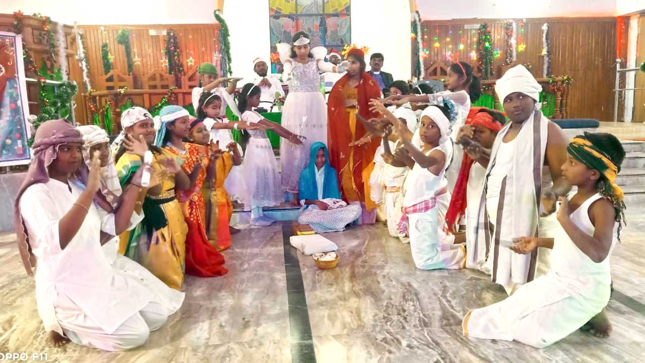ఆయన చూపిన మార్గం ప్రతి ఒక్కరికి అనుసరణీయమని తెలిపారు. అనంతరం చర్చిలో చిన్నారులు క్రీస్తు జననాన్ని వివరించే నాటికను ప్రదర్శించారు. అలాగే నృత్యాలు చేయడంతో పాటు ప్రత్యేక పాటలు పాడారు. తదనంతరం క్రిస్మస్ ఫీస్ట్ ఏర్పాటు చేశారు. కార్యక్రమంలో సంగీత ప్రభాకర్, సెక్రెటరీ జాకబ్, స్టువర్ట్ స్వామిదాస్, ట్రెజరర్ విజయ్, రేవ ప్రవీణ్, రేవ మాణిక్యం, రేవతి, సండే స్కూల్ సెక్రెటరీ థామ్సన్, సంఘ సభ్యులు, చిన్నారులు, తదితరులు, పాల్గొన్నారు.