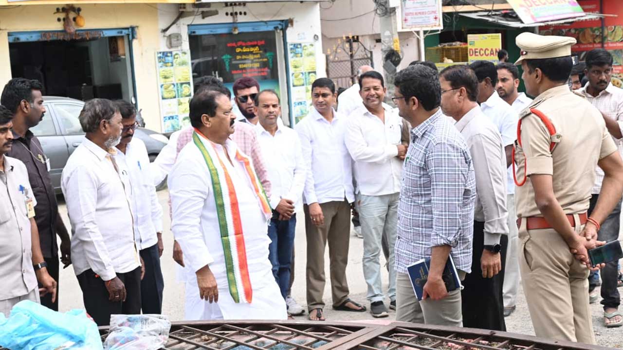 వివిధ శాఖల అధికారులతో కలిసి నగరంలోని వినాయక్ నగర్లో (Vinayak Nagar) ఉన్న గణేష్ నిమజ్జన బావిని పరిశీలించారు. బావి ప్రాంతంలో కట్టుదిట్టమైన ఏర్పాట్లు చేయాలని భక్తులకు ఎలాంటి అసౌకర్యం కలుగకుండా మున్సిపల్ సిబ్బంది, పోలీసులు పర్యవేక్షణ చేయాలని ఆయన ఆదేశాలు జారీ చేశారు. గణేష్ నిమజ్జనం జరిగే ప్రధాన రహదారులను పరిశీలించారు. ఆయన వెంట వ్యవసాయ కమిషన్ (Agricultural Commission) సభ్యుడు గడుగు గంగాధర్, నుడా (NUDA) ఛైర్మన్ కేశ వేణు, కాంగ్రెస్ సీనియర్ నాయకుడు రత్నాకర్, ఖుద్దుస్ తదితరులున్నారు.