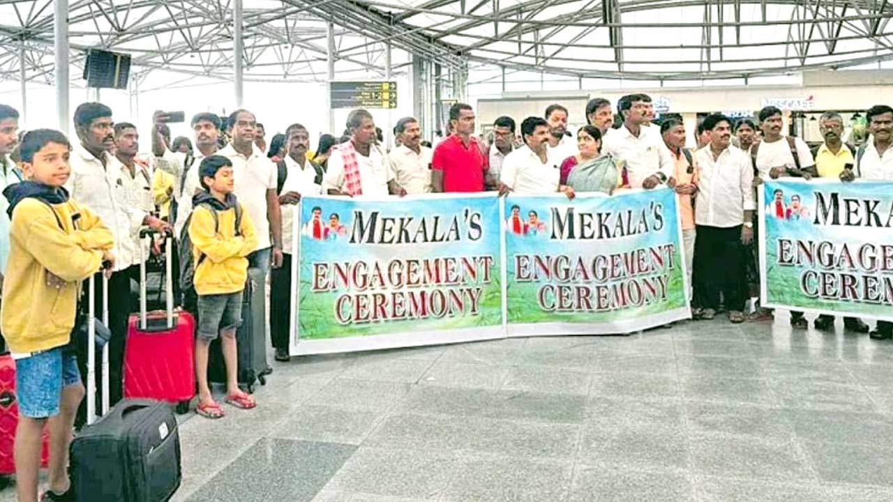 సాధారణంగా నిశ్చితార్ధానికి ప్రైవేట్ బస్సులు (Private Bus) బుక్ చేసి బంధువులు, స్నేహితులను తీసుకెళ్లడం మనందరికీ తెలిసిన విషయమే. కానీ ఈసారి మేకల అయ్యప్ప కుమారుడు జగతి తండ్రి కోరిక మేరకు గ్రామస్థులు, బంధువులను రెండు విమానాల్లో గోవాకు తరలించారు. ఇది విమానాశ్రయ సిబ్బందిని కూడా ఆశ్చర్యంలో ముంచెత్తింది.