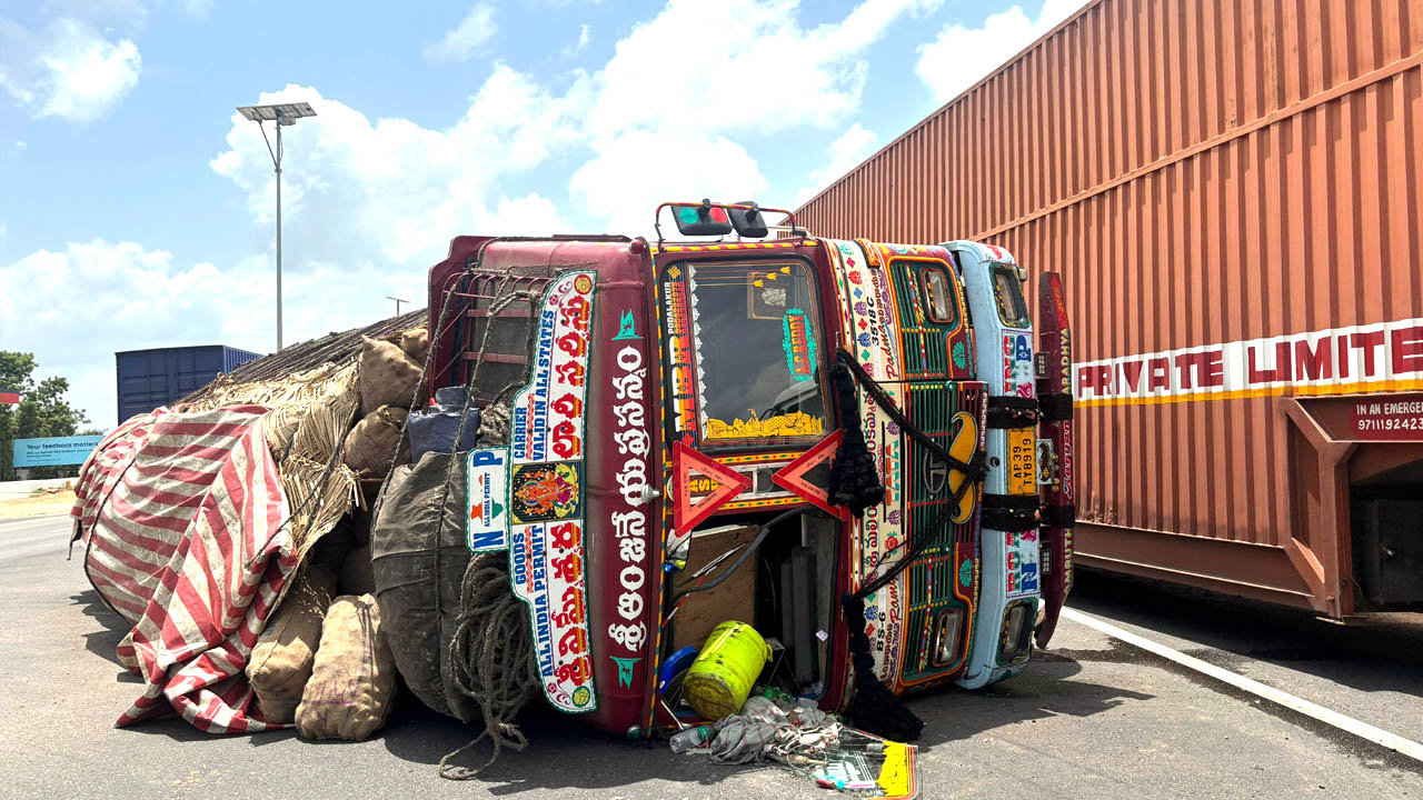 అక్షరటుడే, కామారెడ్డి గ్రామీణం: National Highway 44 | అతివేగంతో వెళ్తున్న ఓ లారీ బోల్తా పడిన ఘటన భిక్కనూరు మండలం (Bhikkanur mandal) సిద్దరామేశ్వర్నగర్ వద్ద 44వ జాతీయ రహదారిపై జరిగింది. వివరాలిలా ఉన్నాయి.. టోల్ప్లాజా వద్ద పోలీసులు వాహనాలు తనిఖీ చేసే క్రమంలో లారీని ఆపేందుకు యత్నించగా, డ్రైవర్ ఆపకుండా లారీ వేగంగా వెళ్లాడు. దీంతో పోలీసులు లారీని వెంబడించగా, రోడ్డుపై పెట్టిన డ్రమ్ములను తప్పించే క్రమంలో అదుపు తప్పి బోల్తా పడింది. దీంతో డ్రైవర్, క్లీనర్లకు ఎలాంటి గాయాలు కాలేదు. కానీ వారు పరారు కాగా, పోలీసులు (police) వెంబడించి పట్టుకున్నారు. ఇదే సమయంలో కొంతమంది లారీ డ్రైవర్లు పోలీసులపై దాడికి యత్నించారు. దీంతో కొద్దిసేపు హైడ్రామా చోటు చేసుకుంది. ఈ కారణంగా భారీగా ట్రాఫిక్ జాం అయ్యింది. దీంతో వారిని అదుపులోకి తీసుకుని స్థానిక పోలీస్ స్టేషన్కు తరలించారు.