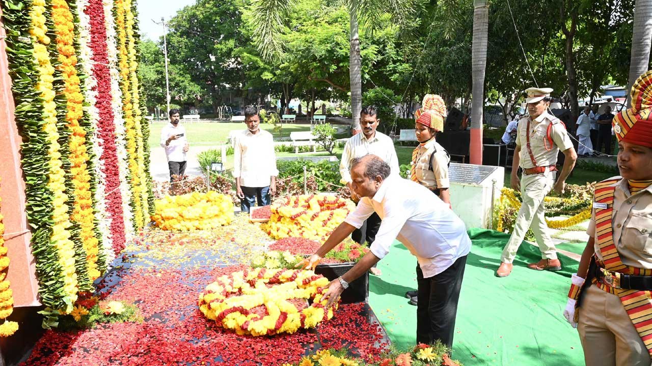 కామారెడ్డిలో నిర్వహించిన కార్యక్రమానికి తెలంగాణ టూరిజం డెవలప్మెంట్ కార్పొరేషన్ (Telangana Tourism Development Corporation) ఛైర్మన్ పటేల్ రమేష్ రెడ్డి ముఖ్య అతిథులుగా పాల్గొన్నారు. తెలంగాణ అమరవీరుల స్థూపం (Telangana Martyrs’ Monument) వద్ద నివాళులర్పించారు. నిజామాబాద్ కలెక్టర్ రాజీవ్గాంధీ హనుమంతు, సీపీ సాయిచైతన్య, కామారెడ్డి కలెక్టర్ ఆశిష్ సంగ్వాన్, ఎస్పీ రాజేష్ చంద్ర స్థూపం వద్ద నివాళులర్పించారు.