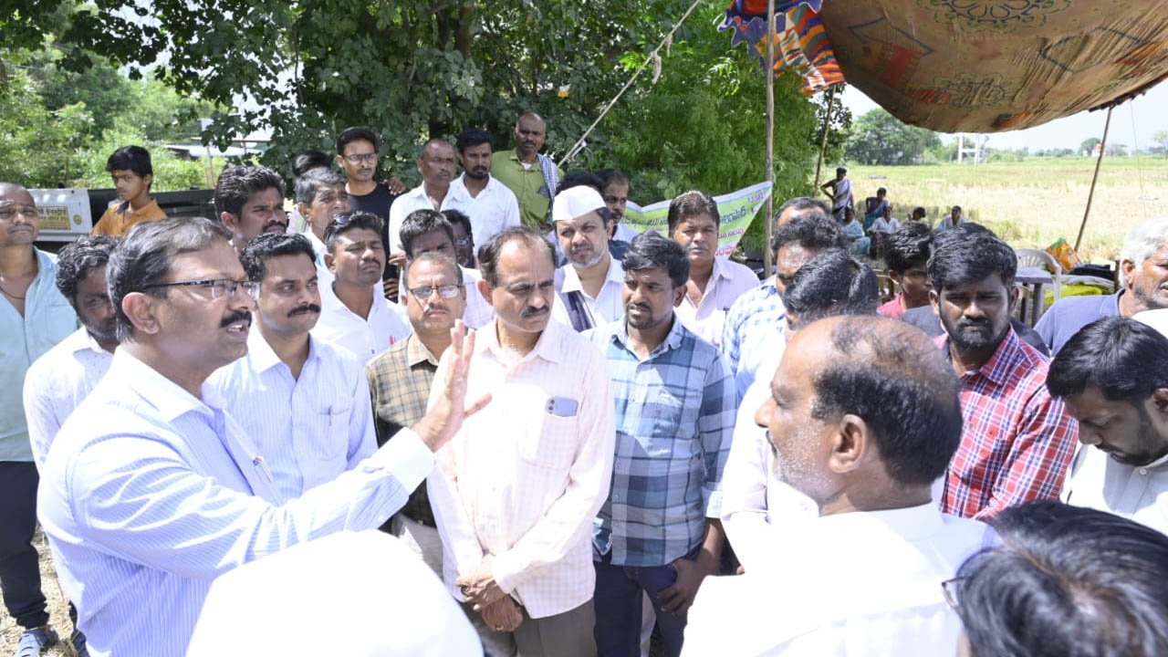 రైతులు (Farmers) తరలించిన ధాన్యం నిల్వలను కలెక్టర్ పరిశీలించారు. రైతుల నుండి ఇప్పటివరకు సేకరించిన ధాన్యం నిల్వలు, మిల్లులకు తరలించిన ధాన్యం గురించి నిర్వాహకులను అడిగి తెలుసుకున్నారు. అనంతరం రికార్డులను పరిశీలించారు. కేంద్రానికి ధాన్యం తీసుకువచ్చిన రైతులను పలకరించి, కొనుగోలు కేంద్రాల్లో ఏమైనా ఇబ్బందులు ఉన్నాయా అని ఆరా తీశారు. కౌలు రైతులకు సంబంధించిన ధాన్యం కొనుగోళ్లలో ఒకింత జాప్యం జరుగుతోందని రైతులు కలెక్టర్ దృష్టికి తేగా, కేంద్రం నిర్వాహకులకు కలెక్టర్ (Collector Vinay Krishna Reddy) స్పష్టమైన సూచనలు చేశారు.