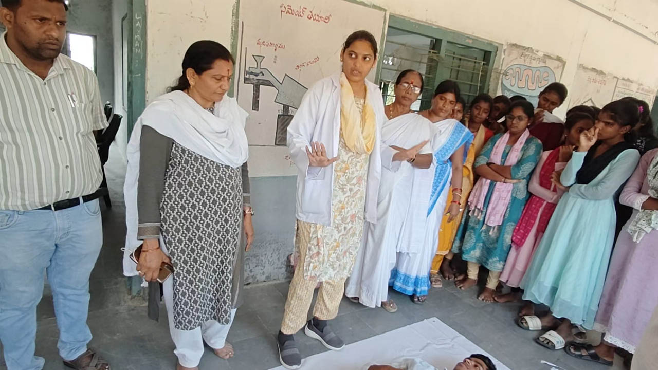 విద్యార్థులకు ప్రాక్టికల్గా సీపీఆర్ (CPR) ఏవిధంగా చేయాలో చేసి చూపించారు. అనంతరం ఆమె మాట్లాడుతూ అయోడిన్ కొరత వల్ల థైరాయిడ్ సమస్యలు (Thyroid Problems) వస్తాయని వివరించారు. అయోడైజ్డ్ ఉప్పును వాడాలని సూచించారు. ఇది పిల్లల్లో పెరుగుదలకు దోహదపడుతుందన్నారు. రోజూ ఐదు గ్రాముల కంటే ఎక్కువ ఉప్పు తీసుకోవద్దని చెప్పారు.