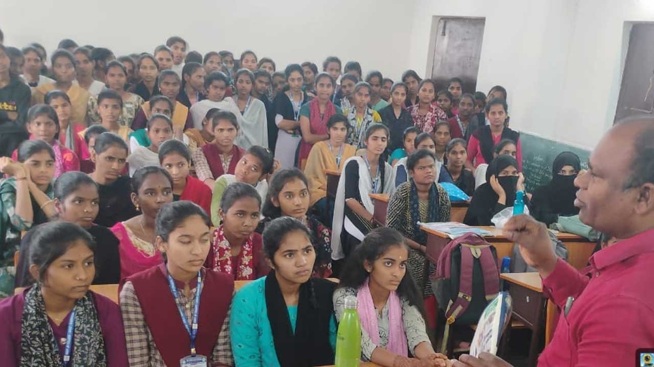 జూన్ నెలలో విడుదలయ్యే దోస్త్ నోటిఫికేషన్ ద్వారా డిగ్రీ అడ్మిషన్లకు రిజిస్ట్రేషన్ చేసుకునే విధానాన్ని ప్రిన్సిపాల్ తెలిపారు. అనంతరం ఆయన లక్ష్యసాధన కోసం క్రమశిక్షణతో చదవాలన్నారు. సోషల్మీడియా సరైన రీతిలో వినియోగించుకోవాలని సూచించారు. యువత దుర్వ్యసనాలకు అలవాడు పడి జీవితాలను నాశనం చేసుకోవద్దని సూచించారు. కార్యక్రమంలో డిగ్రీ కళాశాల అధ్యాపకులు వినయ్ కుమార్, చిరంజీవి, భగవాన్ రెడ్డి, కృష్ణ పాల్గొన్నారు.