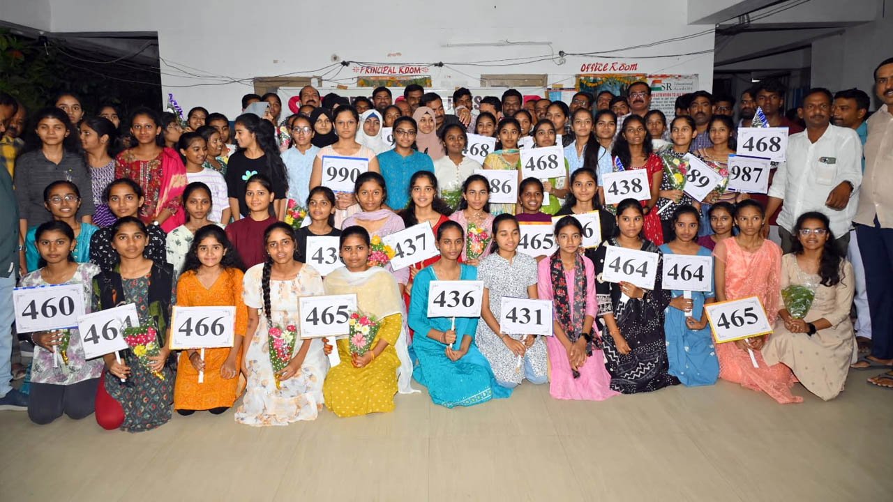 * ద్వితీయ సంవత్సరం బైపీసీలో వైష్ణవి( 993), తహుర ఫాతిమా (992), హన్సిక, రిద్దీ (990) స్నేహ (986), రిషిక (981), శృతి ఎండి అఫ్షనాజ్ 980 మార్కులు సాధించారు.