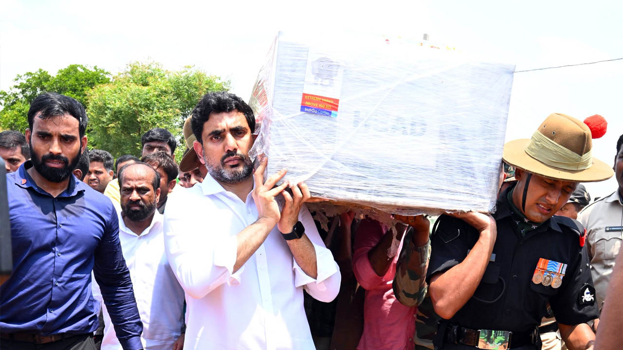 మురళీనాయక్ స్వగ్రామం శ్రీసత్య సాయి జిల్లా (sathyasai district) కళ్లితండాలో అధికారిక లాంఛనాలతో అంత్యక్రియలు నిర్వహించారు. అంతకుముందు డిప్యూటీ సీఎం పవన్ కల్యాణ్ (deputy Cm pawan kalyan), మంత్రులు లోకేష్ (minister lokesh), అనిత, సవిత, అనగాని సత్య ప్రసాద్ కళ్లి తండాకు వెళ్లారు. మురళీనాయక్ పార్థీవ దేహానికి నివాళులర్పించి.. కుటుంబ సభ్యులను ఓదార్చారు. అంతిమయాత్రలో మురళీనాయక్ శవపేటికను మంత్రి లోకేష్ (minister nara lokesh) మోశారు. జాతీయ జెండా చేత పట్టుకుని డిప్యూటీ సీఎం పవన్ కళ్యాణ్ భారత్ మాతాకీ జై అంటూ నినాదాలు చేశారు (deputy CM Pawan kalyan). మురళీనాయక్ కుటుంబానికి రూ.50 లక్షల ఆర్థిక సాయం ప్రకటించారు. ఐదెకరాల పొలం, 300 గజాల ఇంటిస్థలం ఇస్తామని హామీ ఇచ్చారు. మురళీనాయక్ తండ్రికి ఉద్యోగం ఇస్తామని పవన్, లోకేష్ ప్రకటించారు.