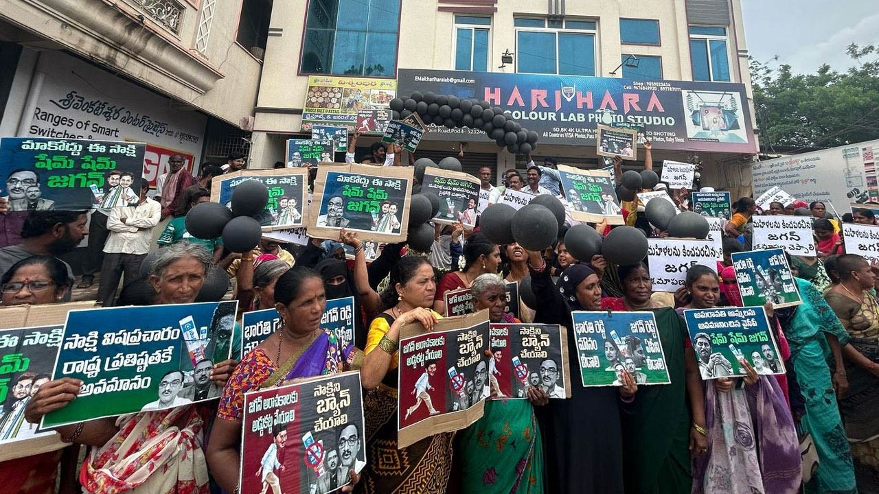 నల్ల బెలూన్లు, ప్లకార్డులతో మహిళల నిరసన తెలిపారు. కాన్యాయ్పైకి కొందరు మహిళలు చెప్పులు విసిరారు. ఈ క్రమంలో టీడీపీ, వైసీపీ కార్యకర్తలు(YSRCP Leaders) రాళ్ల దాడి చేసుకున్నారు. దీంతో అక్కడ ఉద్రిక్తత చోటు చేసుకుంది. ఈ ఘటనలో ఓ పోలీస్ కానిస్టేబుల్(Police Constable)కి గాయాలు కాగా.. ఆయనను ఆస్పత్రికి తరలించి చికిత్స అందిస్తున్నారు. కొందరు మహిళలు సైతం గాయపడ్డారు. దీంతో పోలీసులు ఇరువర్గాల వారిని అక్కడి నుంచి చెదరగొట్టారు. పలువురిని అరెస్ట్ చేసి పోలీస్ స్టేషన్కు తరలించారు.
