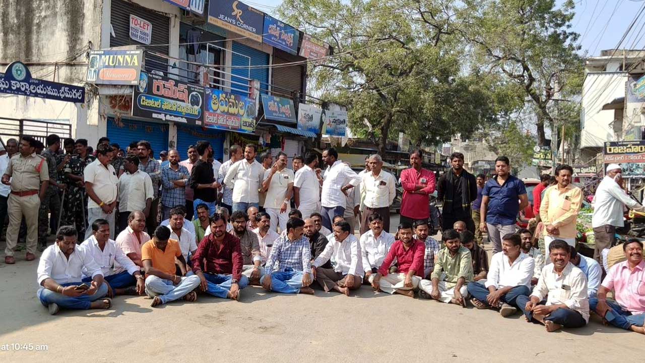 వెజిటెబుల్ మార్కెట్ (vegetable market) మార్పులో తీవ్ర ఆలస్యం ఏర్పడుతుండడంతో సోమవారం అన్ని రాజకీయ పార్టీల నాయకులు, వ్యాపారులు కలిసి మున్సిపల్ కార్యాలయం ఎదుట ధర్నాకు దిగారు. కూరగాయల మార్కెట్ వల్ల ట్రాఫిక్, పార్కింగ్, మురుగు నీటితో దుర్వాసన, వ్యర్థాలు పారవేయడం వంటి సమస్యలతో ప్రజలు ఇబ్బందులు పడుతున్నారన్నారు. మార్కెట్ను వెంటనే తరలించాలని డిమాండ్ చేశారు.