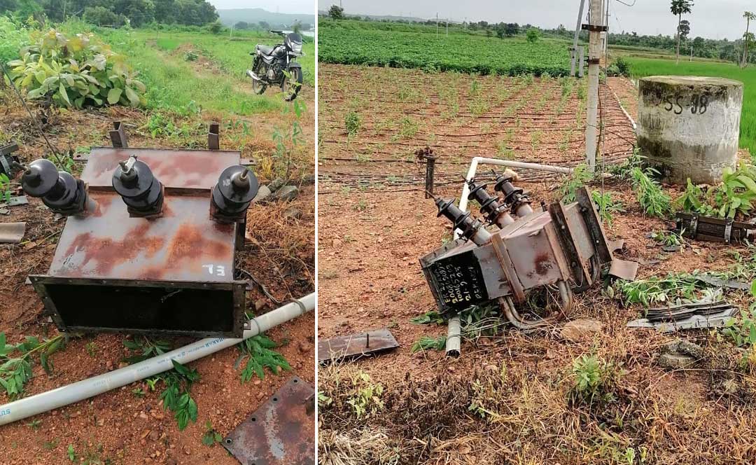 స్థానిక రైతులు తెలిపిన వివరాల ప్రకారం.. నల్లవెల్లి గ్రామ శివారులోని పొలాల్లో శనివారం రాత్రి మూడు 25కేవీ ట్రాన్స్ఫార్మర్లను దుండగులు ధ్వంసం చేశారు. వాటిలోని కాపర్వైర్లను, ఆయిల్ను ఎత్తుకెళ్లారు. ఉదయం గమనించిన రైతులు వెంటనే విద్యుత్ అధికారులకు (Electricity Department) సమాచారం ఇచ్చారు.