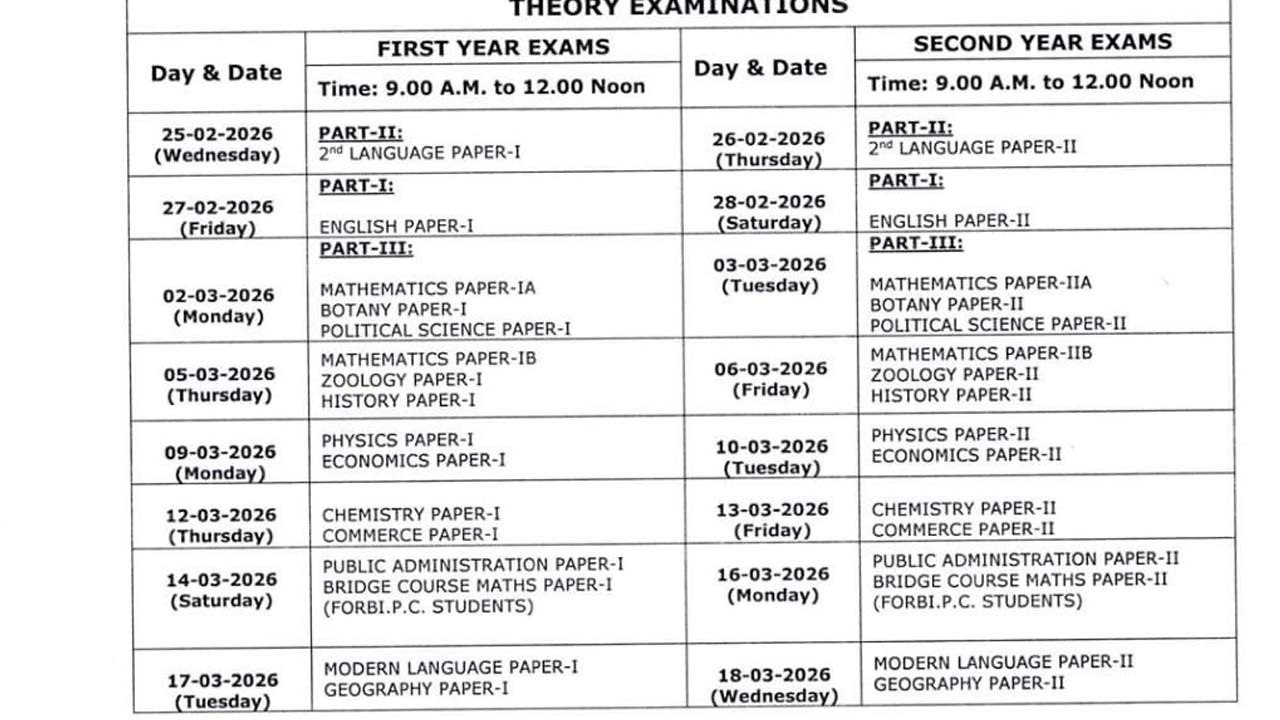 అక్షరటుడే, వెబ్డెస్క్ : Inter Exams | ఇంటర్ పరీక్షల పూర్తి షెడ్యూల్ను ఇంటర్ బోర్డు శుక్రవారం వెలువరించింది. ఫిబ్రవరి 25 నుంచి మార్చి 18 వరకు పరీక్షలు జరగనున్నాయి. ఈ మేరకు ఇంటర్ బోర్డు కార్యదర్శి కృష్ణ ఆదిత్య ఉత్తర్వులు జారీ చేశారు.