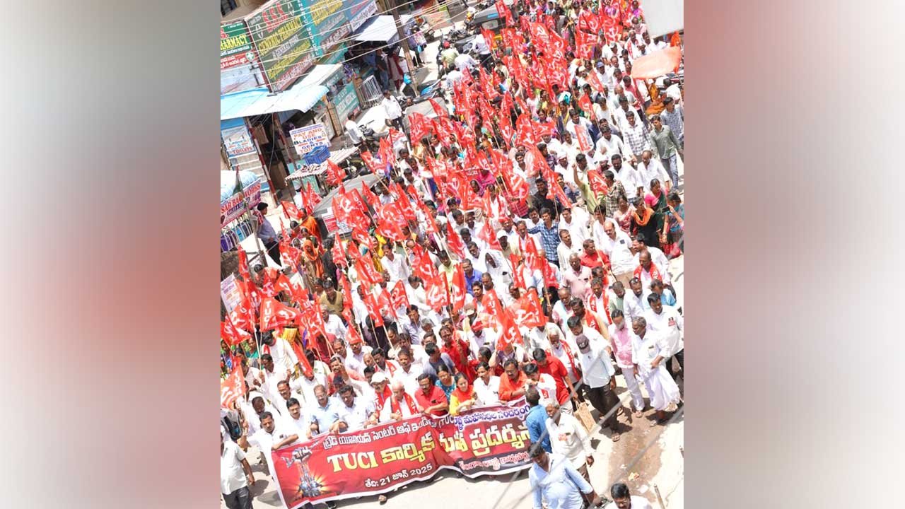 ప్రధాని మోదీ విధానాలు గత ప్రభుత్వాల కంటే ప్రజా వ్యతిరేకంగా కొనసాగుతున్నాయని అమ్రిష్ పటేల్ మండిపడ్డారు. అందులో భాగంగానే కార్మిక వ్యతిరేక చట్టాలను (Anti labor laws) తీసుకొచ్చే ప్రయత్నం చేస్తున్నారని దుయ్యబట్టారు. కార్మిక హక్కులను కాలరాసే నాలుగు లేబర్ కోడ్ లను, పని గంటల పెంపు నిర్ణయాన్ని వెనక్కి తీసుకోవాలని డిమాండ్ చేశారు. అనంతరం రాష్ట్ర అధ్యక్ష కార్యదర్శులు కృష్ణ, సూర్యం మాట్లాడుతూ.. రాష్ట్ర ప్రభుత్వం ఎన్నికల సమయంలో కార్మికులకు ఇచ్చిన హామీలను నెరవేర్చడం లేదన్నారు. ప్రభుత్వ రంగ సంస్థలో పనిచేస్తున్న కార్మికులకు కనీస వేతనాలు సుప్రీంకోర్టు (Supreme Court) తీర్పు ప్రకారం సమాన పనికి సమాన వేతనం అమలు చేయాలని డిమాండ్ చేశారు. కార్యక్రమంలో టీయూసీఐ రాష్ట్ర ఉపాధ్యక్షులు నరేందర్, పద్మ, హనుమేష్, సహాయ కార్యదర్శి రాజన్న, రామయ్య, వెంకటేశ్, జిల్లా ప్రధాన కార్యదర్శి సుధాకర్, రాష్ట్ర నాయకులు వెంకన్న, రాజేశ్, ముత్తన్న, మల్లేశ్, యాకోబు షావలి, తదితరులు పాల్గొన్నారు.