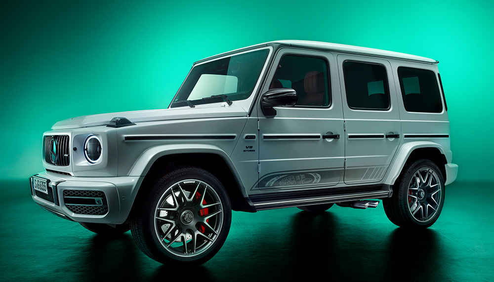 కస్టమ్ అల్లాయ్ వీల్స్, బంపర్లు, వీల్ ఆర్చ్ ఎక్స్టెన్షన్స్. ఐకానిక్ జీ- క్లాస్ డిజైన్ (Iconic G-Class Design). బాక్సీ ఆకృతి, రౌండ్ హెడ్ ల్యాంప్స్, ప్లాట హుడ్, బూట్ డోర్పై స్పేర్ వీల్.