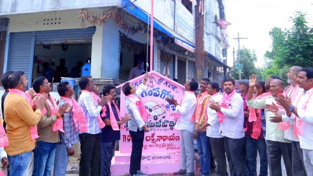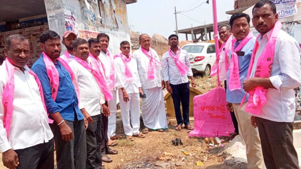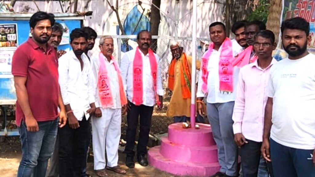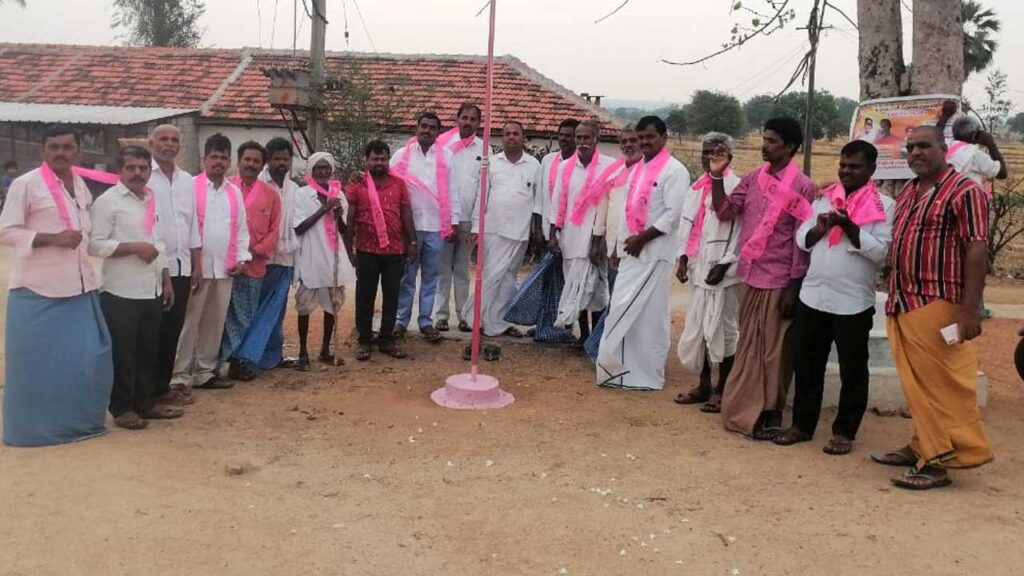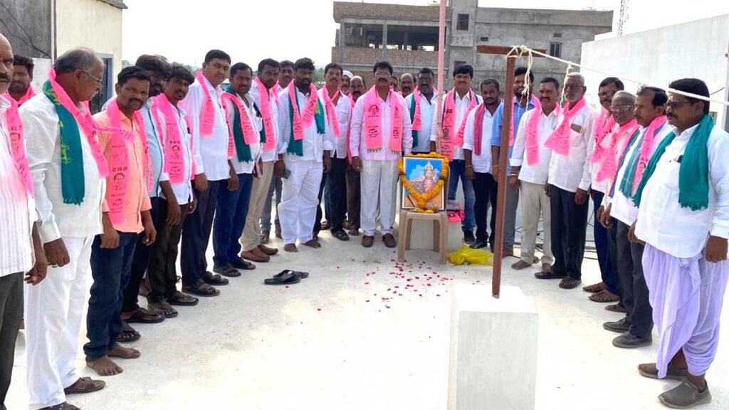 పిట్లం మండలంలోని రాంపూర్ కలాన్ గ్రామంలో జెండా ఎగురవేస్తున్న బీఆర్ఎస్ నాయకులు
