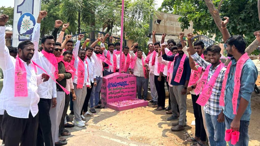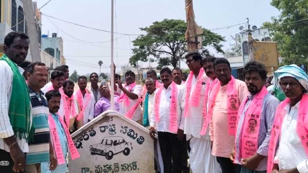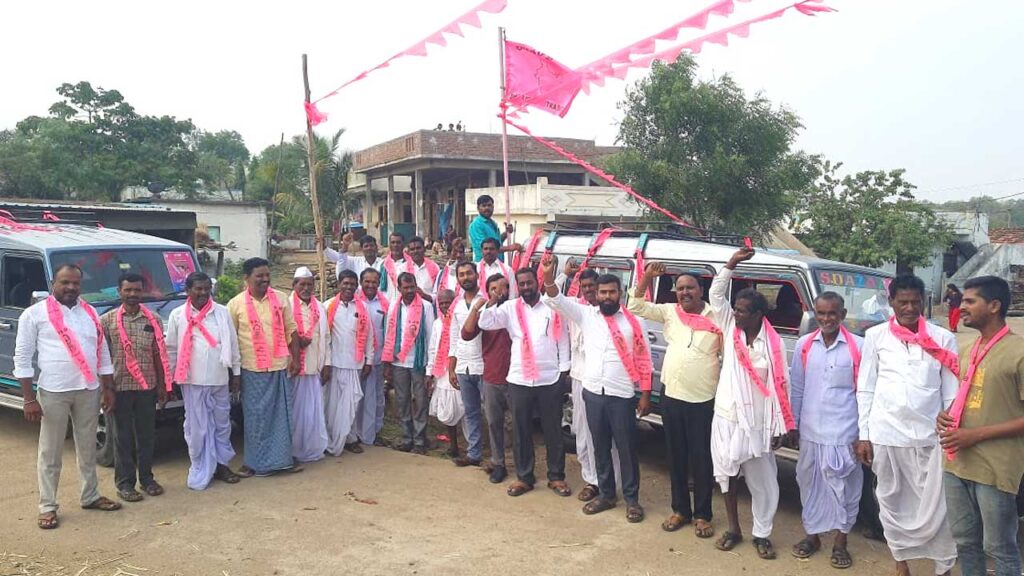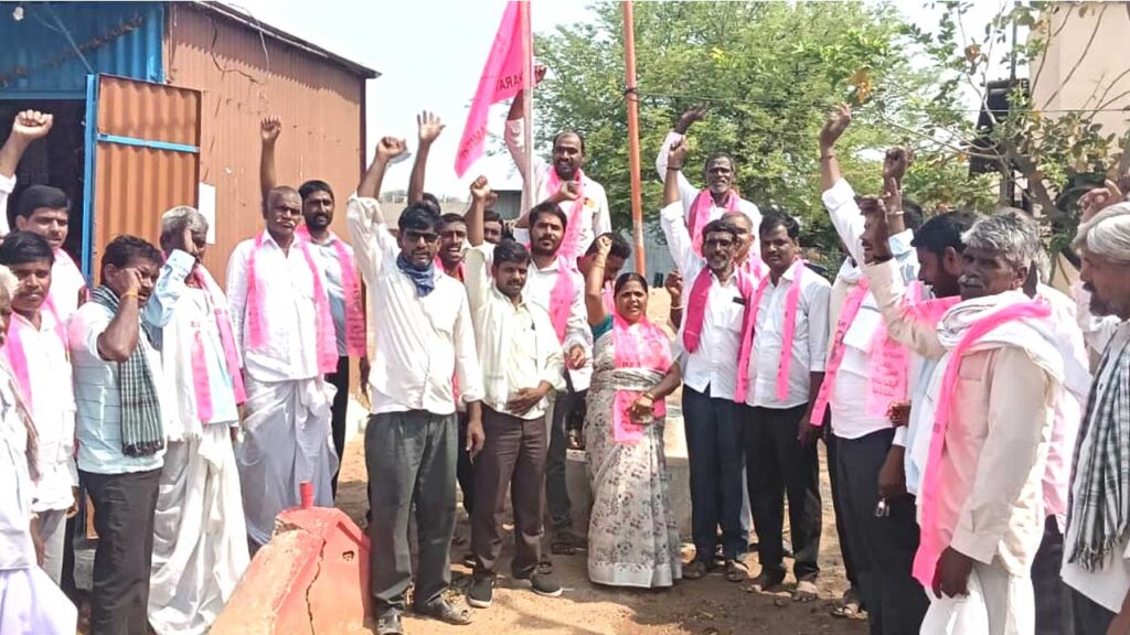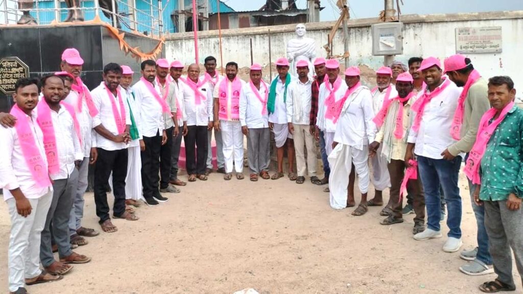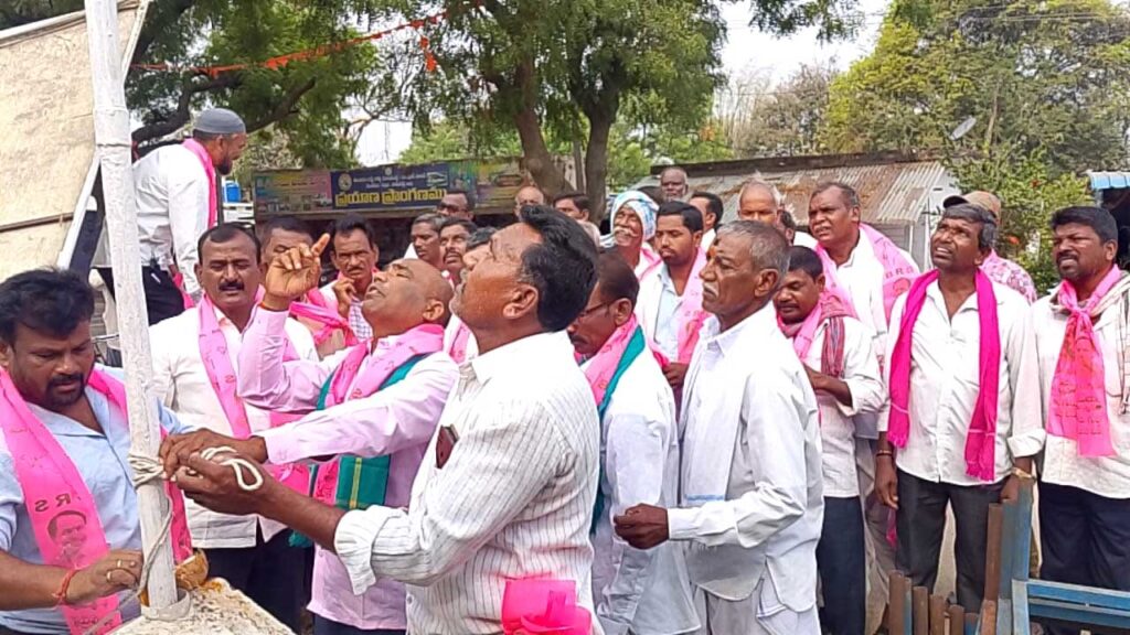 పిట్లం మండలంలోని రాంపూర్ కలాన్ గ్రామంలో జెండా ఎగురవేస్తున్న బీఆర్ఎస్ నాయకులు