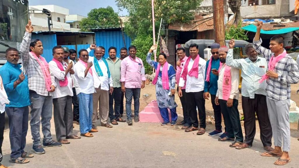 కామారెడ్డి పట్టణంలోని రైల్వే కమాన్ వద్ద పార్టీ జెండాను అవిష్కరిస్తున్న బీఆర్ఎస్ జిల్లా అధ్యక్షుడు ముజీబోద్దీన్