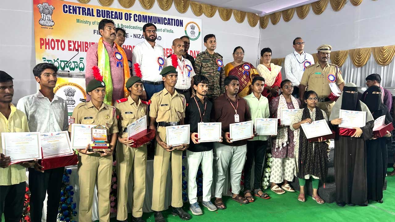 అక్షరటుడే, ఇందూరు: Liberation Day | హైదరాబాద్ విమోచనం కోసం పోరాడిన అమరవీరుల త్యాగాలు చిరస్మరణీయమని 12(టీ) బెటాలియన్ ఎన్సీసీ (NCC) కమాండర్ లెఫ్టినెంట్ కల్నల్ ప్రియాజిత్ సూర్ అన్నారు. కేంద్ర సమాచార ప్రసార మంత్రిత్వ శాఖ (Union Ministry of Information and Broadcasting), సెంట్రల్ బ్యూరో ఆఫ్ కమ్యూనికేషన్ (Central Bureau of Communication) ఆధ్వర్యంలో జిల్లా కేంద్రంలోని గిరిరాజ్ ప్రభుత్వ డిగ్రీ కళాశాలలో (Giriraj Government Degree College) మంగళవారం హైదరాబాద్ లిబరేషన్ డే ఫోటో ఎగ్జిబిషన్ (Liberation Day Photo Exhibition) నిర్వహించారు.