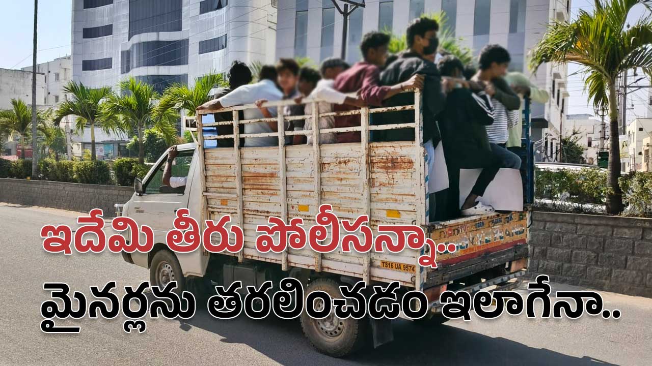 కాగా.. ఈ క్రమంలో పెద్ద మొత్తంలో మైనర్లు పట్టుబడ్డారు. అనంతరం వారిని జువెనల్ కోర్టు ఎదుట ప్రవేశపెట్టారు. కాగా.. వారిని ట్రాఫిక్ పోలీసులు ఓ వాహనంలో తరలించిన ఘటన తీవ్ర విమర్శలకు దాసి తీసింది. ఓ ఎస్సై స్థాయి అధికారి పర్యవేక్షణలోనే వీరిని వివిధ కూడళ్లకు తరలించి సామాజిక సేవ చేయించాలని ఆదేశాలు ఉండగా.. ఓ టాటా ఏఎస్ వాహనంలో (Tata AS vehicle) పదుల సంఖ్యలో మైనర్లను కుక్కి ఎక్కించారు. అనంతరం ఆయా కూడళ్లకు తరలించి సామాజిక సేవ చేయించారు.