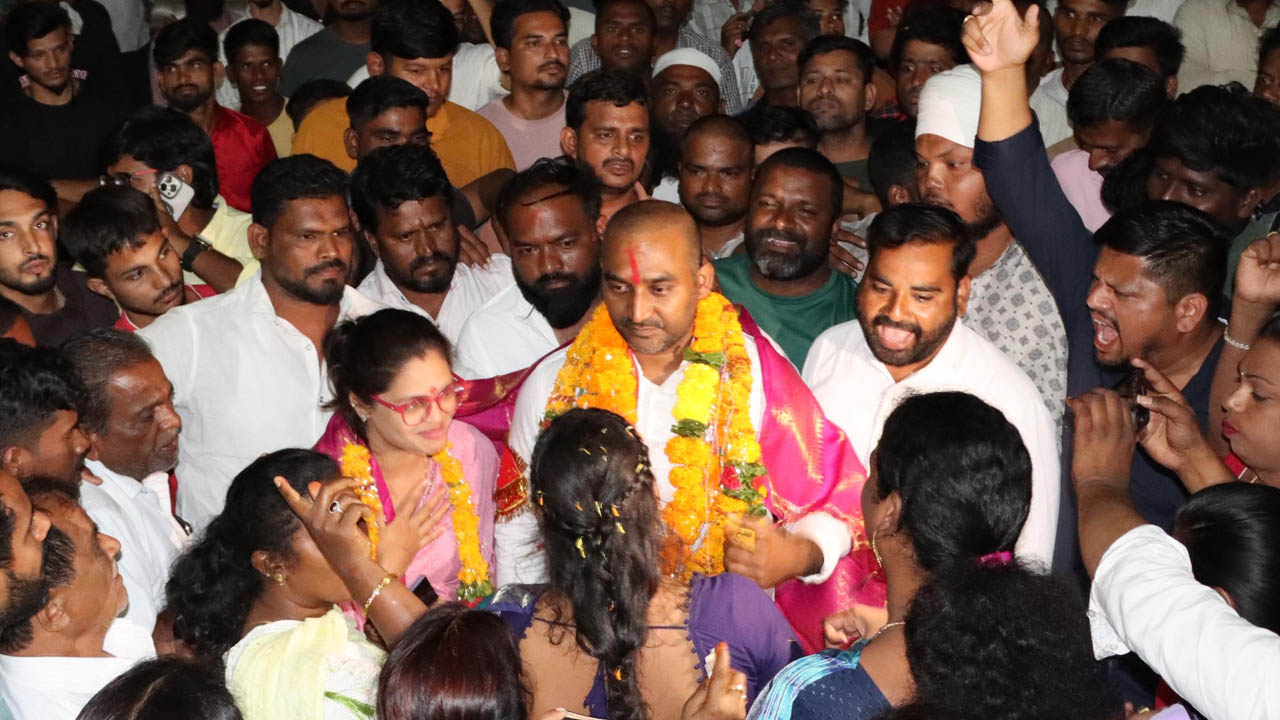 కొత్త బస్టాండ్ నుంచి చంద్రశేఖర్ ఇంటి వరకు భారీగా ర్యాలీ తీశారు. గజమాలతో సత్కరించి భారీ జులూస్ చేపట్టారు. ఇంటికి చేరుకున్న చంద్రశేఖర్ రెడ్డిని పలువురు కలిశారు.