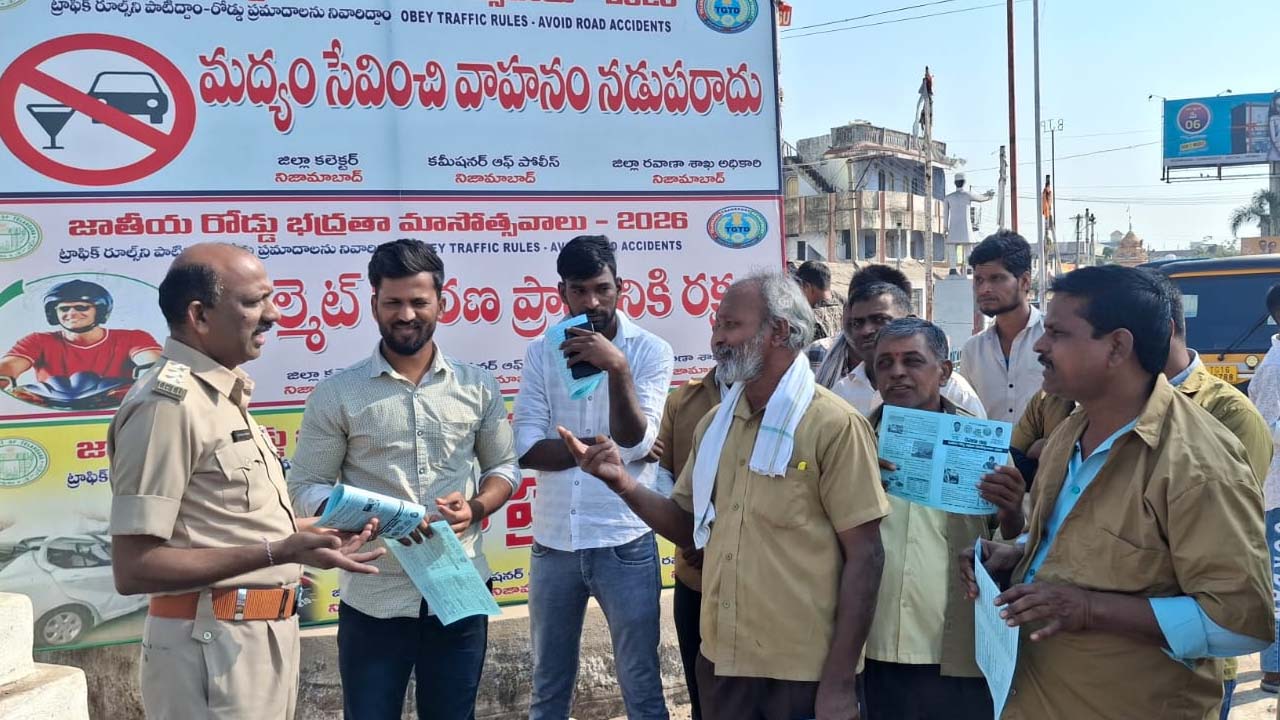 అక్షరటుడే, ఆర్మూర్ : Traffic Rules | ప్రతిఒక్క వాహనదారుడు ట్రాఫిక్ నియమ నిబంధనలకు అనుగుణంగా వాహనాలను నడపాలని ఆర్మూర్ ఎంవీఐ రాహుల్ కుమార్ అన్నారు. జాతీయ భద్రత మాసోత్సవాల్లో భాగంగా శనివారం ఆర్మూర్ మున్సిపల్ (Armoor Municipality) పరిధిలోని పెర్కిట్ చౌరస్తాలో వాహనదారులకు అవగాహన కార్యక్రమాన్ని నిర్వహించారు. మద్యం సేవించి వాహనాలు నడపకూడదని, హెల్మెట్ ధరించాలన్నారు. ట్రాఫిక్ నిబంధనలను ఉల్లంఘిస్తే జరిమానాలతో పాటు జైలుశిక్ష తప్పదన్నారు. ఈ కార్యక్రమంలో ఆటో డ్రైవర్, వాహనదారులు పాల్గొన్నారు.