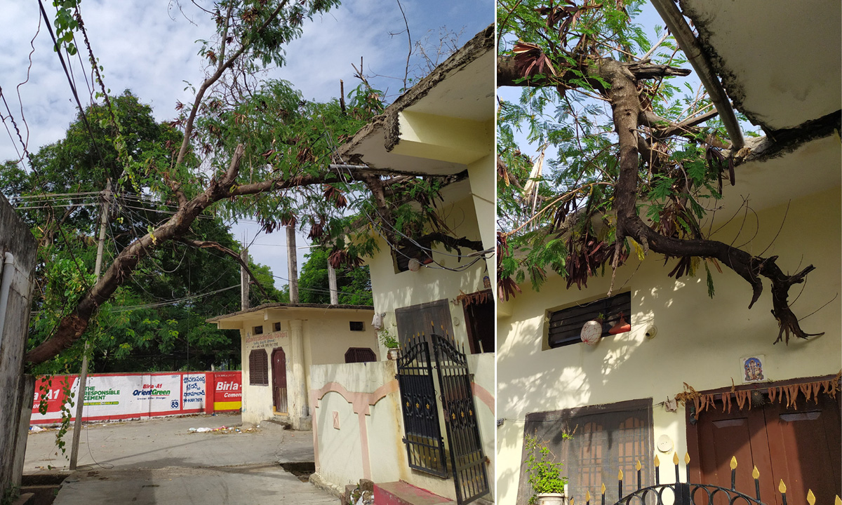 ఈ విషయమై అధికారులకు వివరించినా కనీసం పట్టించుకోవడం లేదని వాపోతున్నారు. చెట్టుకు ఆనుకుని విద్యుత్ తీగలు కూడా ఉన్నాయని.. దీంతో చెట్టు మరింత కూలితే ప్రమాదాలు జరిగే అవకాశం ఉందని ఆవేదన వ్యక్తం చేస్తున్నారు. అయితే విద్యుత్శాఖ సిబ్బంది కాని, మున్సిపల్ కార్పొరేషన్ అధికారులు గాని, రైతు బజార్ సిబ్బంది గాని పట్టించుకోవడం లేదని వారు వాపోతున్నారు. నిత్యం వాహనాలు తిరిగే మార్గంలో ఓ ఇంటిపై చెట్టు కూలి వారం రోజులు గడుస్తున్నా తమకు సంబంధం లేనట్లు అధికారులు, సిబ్బంది వ్యవహరించడం ఎంతవరకు సబబని ప్రశ్నిస్తున్నారు. వెంటనే అధికారులు స్పందించి చెట్టును తొలగించాలని స్థానికులు కోరుతున్నారు.