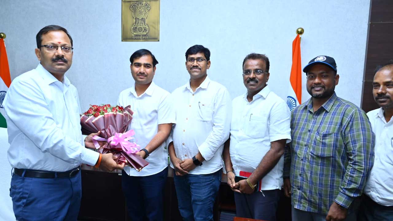 అక్షరటుడే, ఇందూరు: TRESA | నిజామాబాద్ కలెక్టర్గా వినయ్ కృష్ణారెడ్డి (Nizamabad Collector Vinay Krishna Reddy) శుక్రవారం బాధ్యతలు చేపట్టారు. ఈ సందర్భంగా ఆయనను రెవెన్యూ అసోసియేషన్ ప్రతినిధులు కలిశారు. ఈ సందర్భంగా ఆయనకు శుభాకాంక్షలు తెలిపారు. జిల్లాలో అమలు చేస్తున్న భూభారతితో (Bhubarathi) పాటు ఇతర ప్రభుత్వ కార్యక్రమాల అమలుకు పూర్తిస్థాయిలో సహకారం అందిస్తామన్నారు. కలెక్టర్ను కలిసిన వారిలో ట్రెసా (Telangana Revenue Employees Service Association) జిల్లా అధ్యక్షుడు రమణ్ రెడ్డి, కార్యదర్శి ప్రశాంత్ కుమార్, కలెక్టరేట్ పర్యవేక్షకులు శ్రీనివాస్ రావు, భాస్కర్, నిజామాబాద్ నార్త్ మండల తహశీల్దార్ విజయ్కాంత్ రావు తదితరులున్నారు.