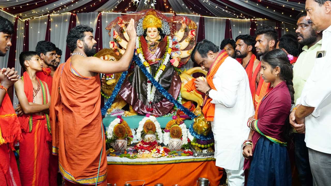 ఈ మేరకు మండపాల్లో నిర్వహించిన చండీ హోమంలో పాల్గొన్నారు. తిమ్మాపూర్ గ్రామస్థులకు దేవుని రథం కోసం రూ.50వేలు, మోస్రా దుర్గా భవానికి రూ.5వేలు అందజేశారు. కార్యక్రమంలో భూపాల్ రెడ్డి, సుదర్శన్ గౌడ్, పీఏసీఎస్ ఛైర్మన్ జగన్మోహన్ రెడ్డి, రవి కోర్వ, శ్రీహరీ గౌడ్, నాగిరెడ్డి, శ్రీనివాస్, హన్మాండ్లు, అభిలాష్ గౌడ్, గణేష్, సంపత్, నరేష్ రెడ్డి పాల్గొన్నారు.