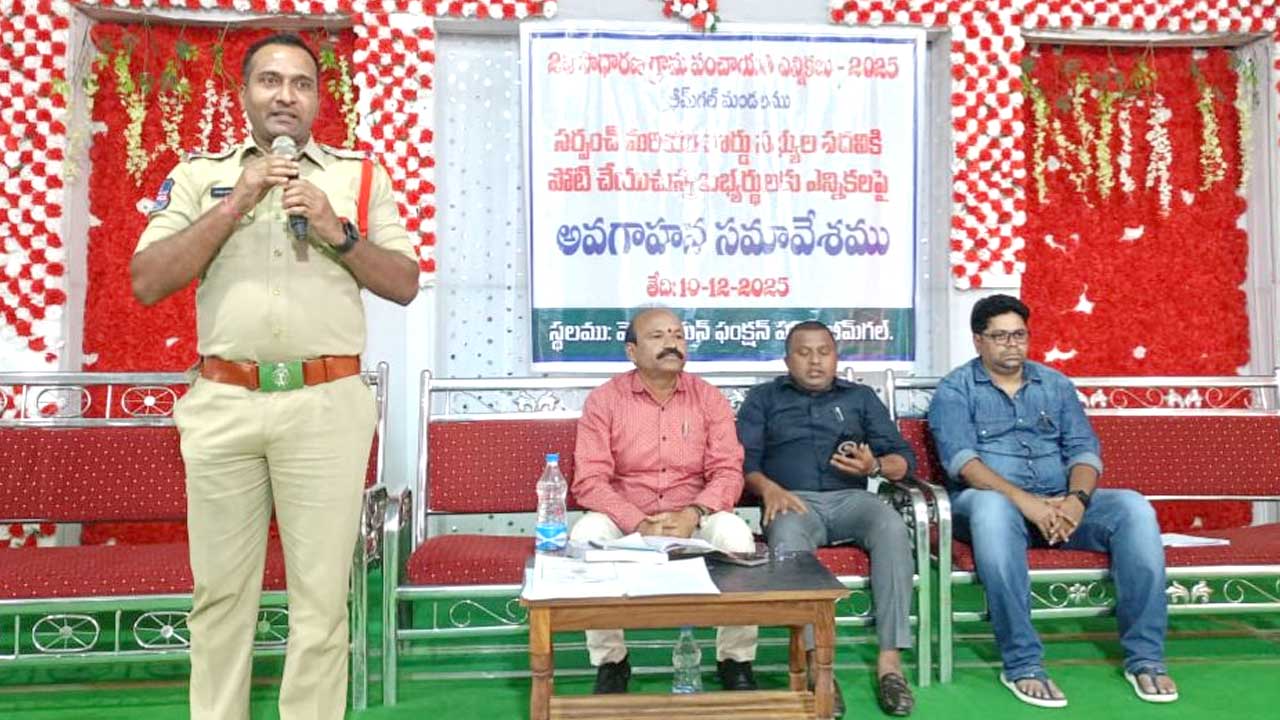 అక్షరటుడే, భీమ్గల్: Bheemgal | పంచాయతీ ఎన్నికల్లో (Panchayat Elections) పోటీ చేసే అభ్యర్థులు ఎన్నికల నియమావళిని తప్పకుండా పాటించాలని, ఎవరైనా అతిక్రమిస్తే కఠిన చర్యలు తప్పవని సీఐ సత్యనారాయణ హెచ్చరించారు. భీమ్గల్లోని ఫంక్షన్ హాల్లో ఎన్నికల్లో పోటీ చేస్తున్న అభ్యర్థులకు బుధవారం అవగాహన కార్యక్రమం నిర్వహించారు. ఈ సందర్భంగా సీఐ మాట్లాడుతూ ఎన్నికల నియమావళిని(Election Code of Conduct) ప్రతి ఒక్కరూ పాటించాలన్నారు. ఎన్నికలు ప్రశాంత వాతావరణంలో సజావుగా సాగేందుకు సహకరించాలని కోరారు. శాంతి భద్రతలకు విఘాతం కలుగకుండా ఉండేందుకు పోలీస్ శాఖ ఆధ్వర్యంలో అన్ని చర్యలు తీసుకుంటున్నామని చెప్పారు.