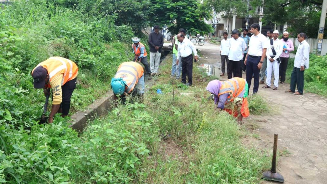 అధిక వర్షాల హెచ్చరికల నేపథ్యంలో కామారెడ్డి పట్టణంలో (kamareddy Municipality) డ్రెయినేజీలు బ్లాక్ అయి మురుగునీరు రోడ్ల మీదికి, ఇళ్లలోకి రాకుండా ముందస్తుగా అన్ని డ్రెయినేజీలను శుభ్రం చేయాలని, రోడ్లకు ఇరువైపులా ఉన్న పిచ్చిమొక్కలను తొలగించాలని ఆదేశించారు. తడి,పొడి చెత్త ఎక్కడపడితే అక్కడ పడేయకుండా ప్రతిరోజు వాహనాల ద్వారా చెత్తను సేకరించి డిస్పోజల్ చేయాలని, పట్టణంలో ఎక్కడ వర్షం నీరు నిల్వ ఉండకుండా తగుచర్యలు చేపట్టాలన్నారు.