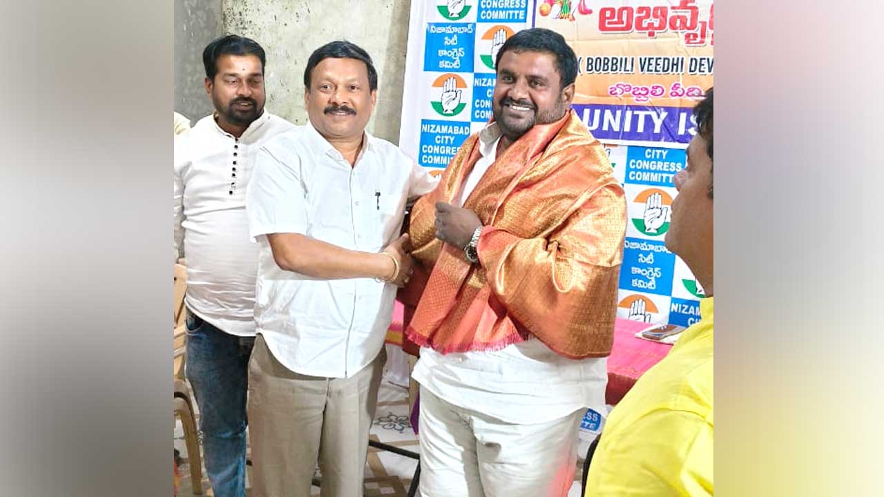 అక్షరటుడే, నిజామాబాద్ సిటీ: Nizamabad Congress | రాబోయే మున్సిపల్ ఎన్నికల్లో ఎక్కువ స్థానాలను గెల్చుకుని కార్పొరేషన్పై (Municipal Corporation) కాంగ్రెస్ జెండా ఎగురవేస్తామని పార్టీ నగర అధ్యక్షుడు బొబ్బిలి రామకృష్ణ అన్నారు. నిజామాబాద్ నగర అధ్యక్షుడిగా ఆయన ఎన్నికైన సందర్భంగా బొబ్బిలి వీధి (Bobbili Veedhi) అభివృద్ధి కమిటీ మంగళవారం ఘనంగా సన్మానించింది. ఈ సందర్భంగా ఆయన మాట్లాడుతూ కాంగ్రెస్ ప్రభుత్వం చేపడుతున్న అభివృద్ధి కార్యక్రమాలను ప్రజల్లోకి తీసుకెళ్తానని పేర్కొన్నారు.
