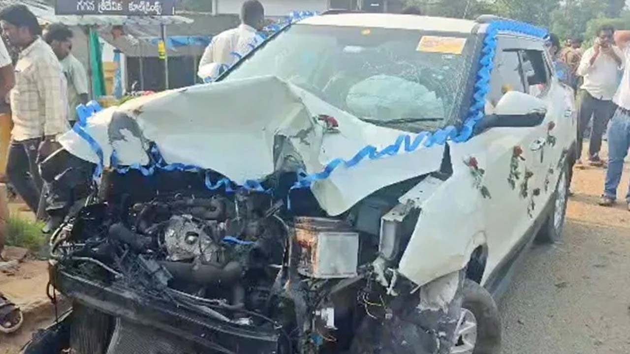 కాకినాడ జిల్లా కిర్లంపూడి మండలం (Kirlampudi Mandal) సోమవరం దగ్గర హైవేపై శనివారం ఉదయం కారు బీభత్సం సృష్టించింది. పెళ్లి వేడుక ముగించుకొని అన్నవరం నుంచి జగ్గంపేట (Jaggampet)కు వెళ్తుండగా.. కారు ముందు టైరు పేలింది. దీంతో సోమవరం దగ్గర హైవేపై ఉన్న బస్సు షెల్టర్లోని ప్రయాణికులపైకి దూసుకెళ్లింది. అనంతరం బైక్ను ఢీకొట్టి ఆగిపోయింది.