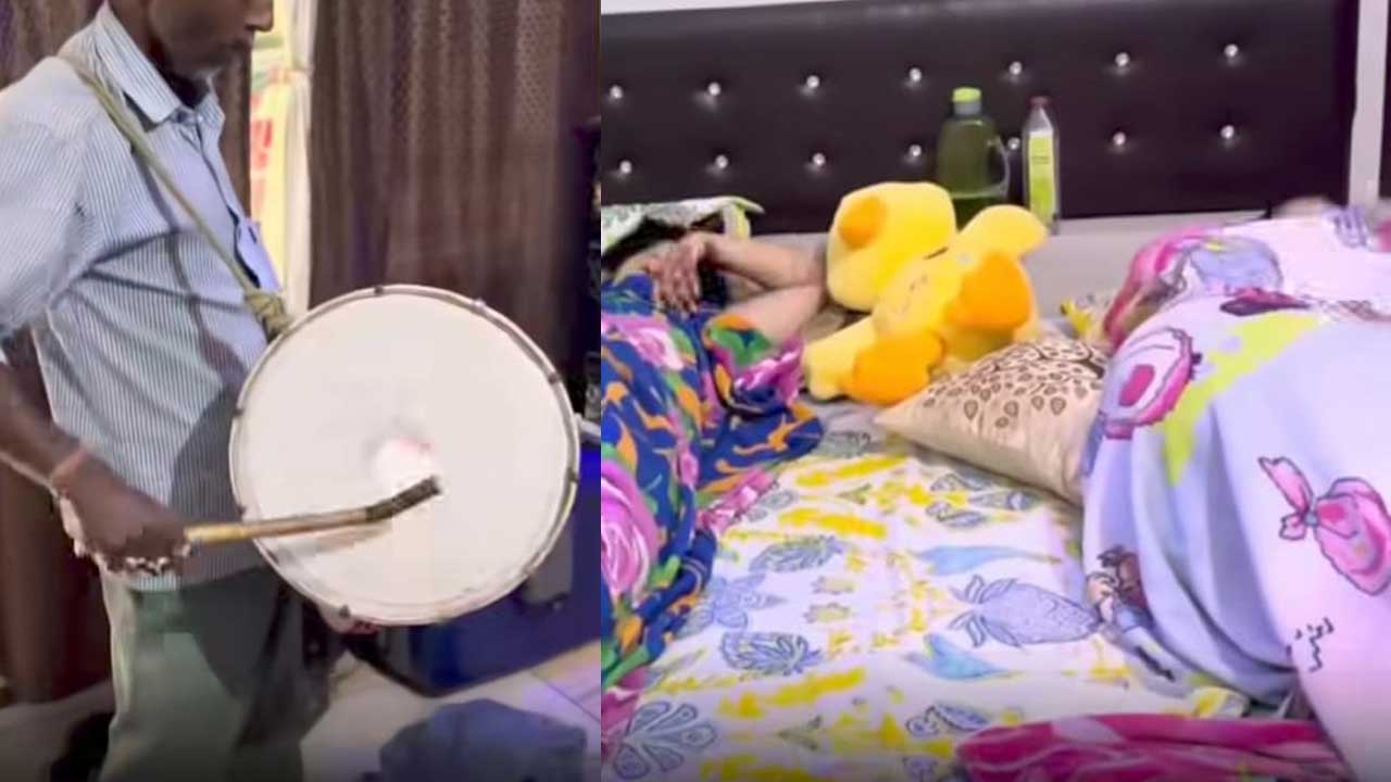 సోషల్ మీడియాలో (Social Media) వైరల్ అవుతున్న ఈ వీడియోలో కూతుళ్లు ఇద్దరు నిద్రలో ఉండగా, ఇద్దరు సంగీతకారులు ఇంట్లోకి వచ్చి ఒకరు డోలు, మరొకరు ట్రంపెట్తో “శ్రీ రామ్ జాంకీ బైతే హై” అనే భక్తి గీతాన్ని వాయించడం కనిపిస్తుంది. అలా ఒక్కసారిగా గది మొత్తం సన్నాయి శబ్ధాలతో మార్మోగిపోవడంతో కూతుళ్లు ఉలిక్కిపడి మంచం మీద నుంచి లేస్తారు. ముఖాల్లో ఆశ్చర్యం, నవ్వు, చికాకుల మిశ్రమ భావాలు కనిపిస్తాయి. తల్లి నవ్వుతూ, “ఇలా అయినా లేస్తారా ఇప్పుడు?” అని అడగగా, కూతుళ్లు మొదట కోపంగా ఉన్నా చివరికి నవ్వుతూ తల్లిని కౌగిలించుకున్నారు. ఈ సీన్ చూసి నెటిజన్లు తెగ నవ్వేసుకుంటున్నారు.