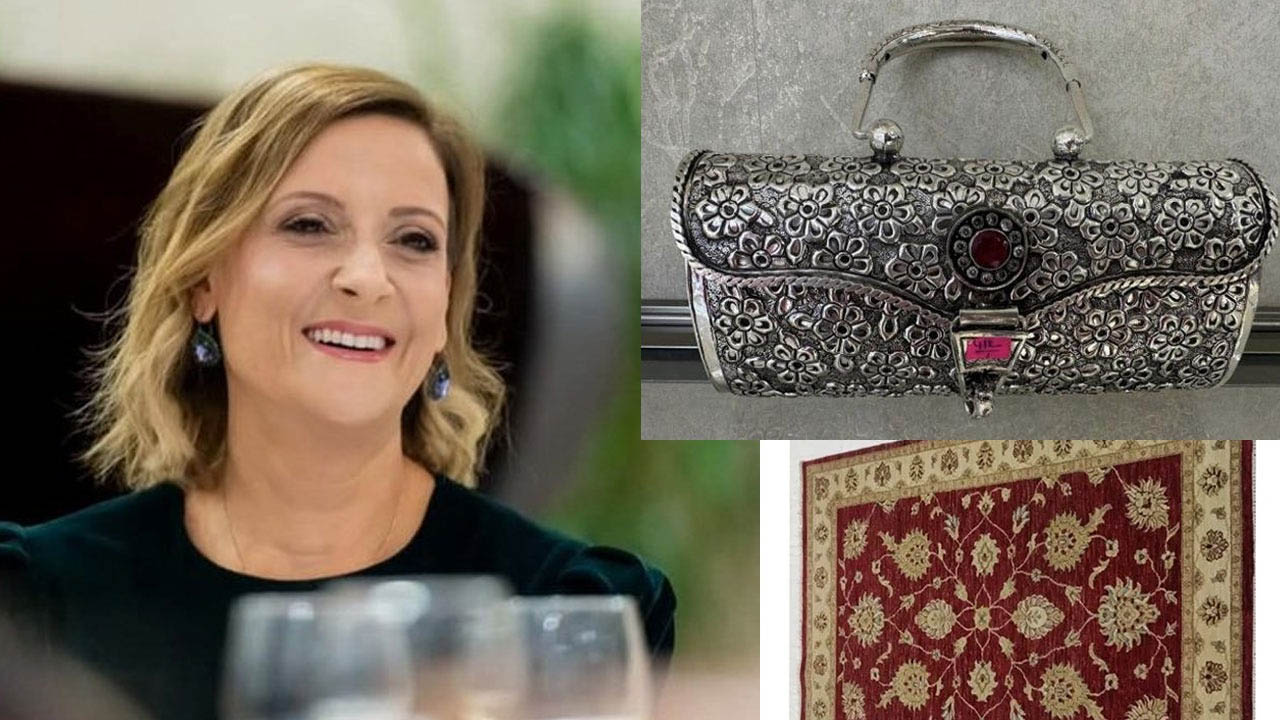ప్రధాని మోదీ(Prime Minister Modi) తన పర్యటన సందర్భంగా సైప్రస్ ప్రథమ మహిళ ఫిలిప్పా కర్సెరాకు వెండి క్లచ్ పర్స్ను బహుమతిగా ఇచ్చారు. దీనిని ఆంధ్ర ప్రదేశ్(Andhra Pradesh)లో తయారు చేయడం గమనార్హం. రిపౌస్ టెక్నిక్ ఉపయోగించి వెండితో దీనిని తయారు చేశారు. ఈ పర్సు మధ్యలో ఒక విలువైన రాయి కూడా ఏర్పాటు చస్త్రవారు. అలాగే మోదీ సైప్రస్ అధ్యక్షుడు నికోస్కు కాశ్మీరీ సిల్క్ కార్పెట్(President Nikos Kashmiri silk carpet)ను బహుమతిగా ఇచ్చారు. ఇది చూడటానికి ఎంతో ప్రత్యేకంగా ఉంటుంది. చూసే కోణం, వెలుతురును బట్టి వివిధ రంగుల్లో కనిపించడం ఈ కార్పెట్ ప్రత్యేకత.