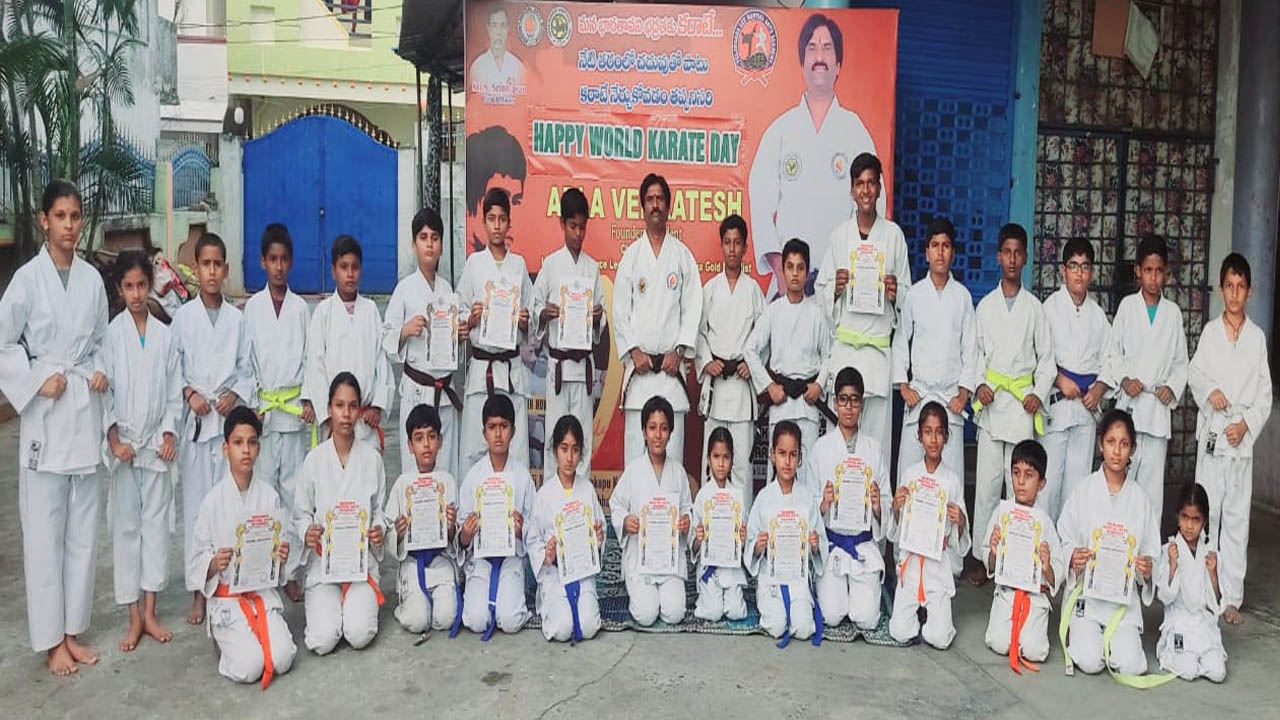 కరాటే అకాడమీ ఫౌండర్ ప్రెసిడెంట్ ఎడ్ల వెంకటేష్ విద్యార్థులతో కలిసి కేక్ కట్ చేసి కరాటే దినోత్సవ శుభాకాంక్షలు తెలిపారు. ఈ సందర్బంగా ఎడ్ల వెంకటేష్ మాట్లాడుతూ… ఆకతాయిల ఆగడాలకు అడ్డుకట్ట వేయాలంటే నేటితరంలో చదువుతో పాటు కరాటే నేర్చుకోవడం తప్పని సరి అని, ఎవరైనా తమపై అకారణంగా దాడి చేస్తే ధైర్యంగా ఎదుర్కొని పోరాడాలని సూచించారు.
