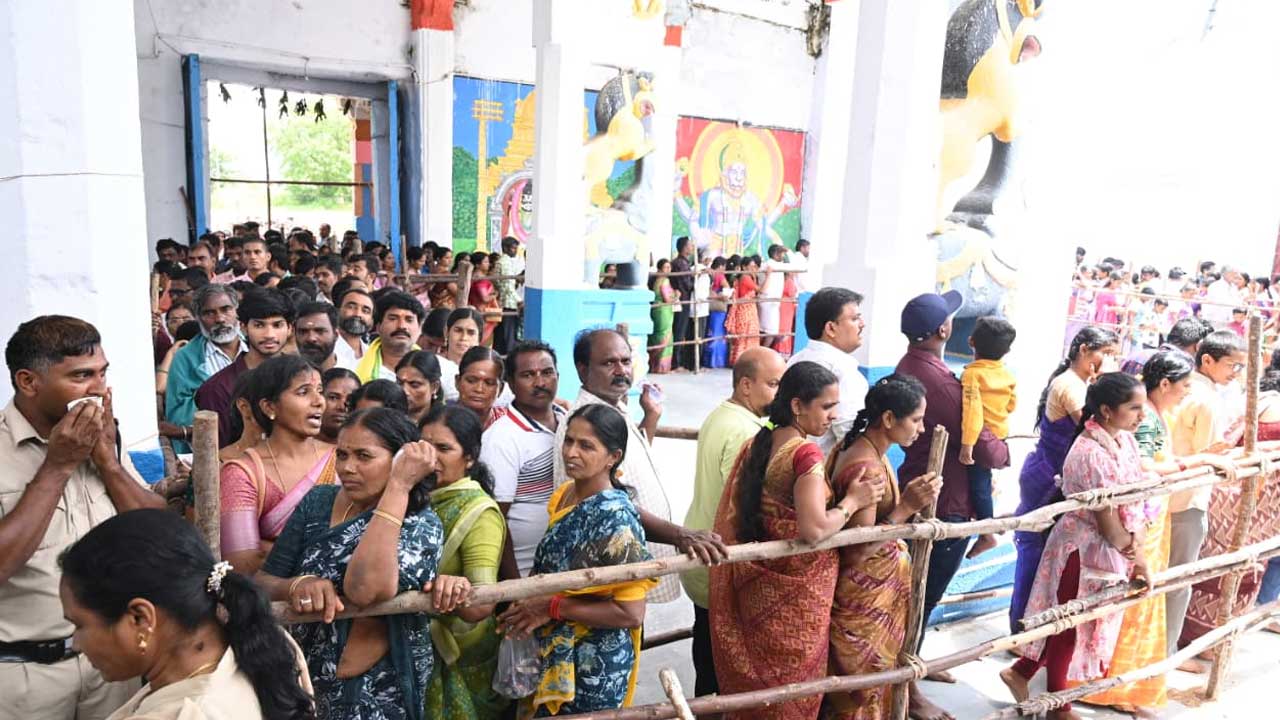 ఆలయంలో భక్తల క్యూ..