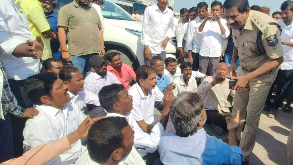 ఎన్నికల కోడ్ ఉన్నందున పోలింగ్ బూత్ వద్దకు అనుచరులతో రావడం చట్ట వ్యతిరేకమని సీఐ రాజిరెడ్డి (CI Raji reddy) మాజీ ఎమ్మెల్యే జాజాలకు సమాధానం ఇవ్వడంతో ఆయన తీవ్ర ఆగ్రహం వ్యక్తం చేశారు. వెంటనే పార్టీ కార్యకర్తలతో కలిసి స్థానిక బస్టాండ్ ప్రాంతంలో రహదారిపై భైఠాయించి ధర్నా రాస్తారోకో చేపట్టారు. విషయం తెలిసిన పార్టీశ్రేణులు పెద్దఎత్తున అక్కడికి చేరుకోవడంతో ఉద్రిక్తత వాతావరణం నెలకొంది. ఎమ్మెల్యేకు, పోలీసులకు వ్యతిరేకంగా నినాదాలు చేశారు.